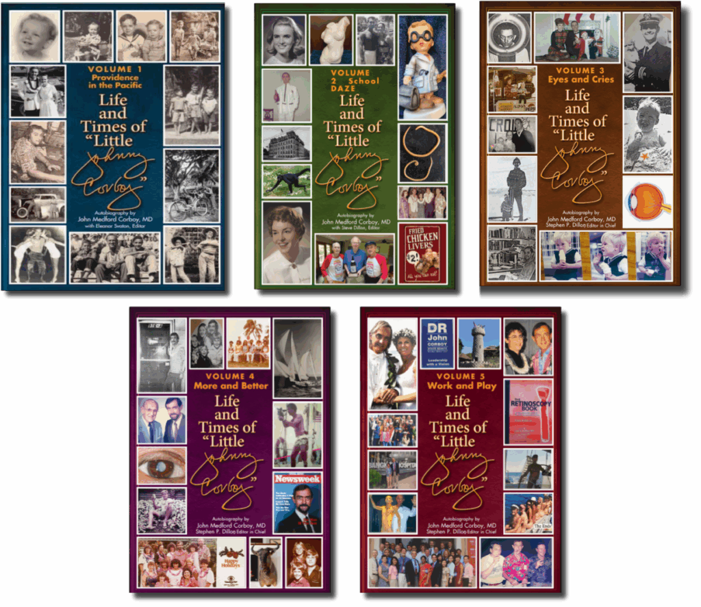 After his second retirement, from the foundation, he has returned to his interest in writing by describing all the fun and joy he has experienced in life in the five-volume series The Life and Times of “Little Johnny Corboy.”